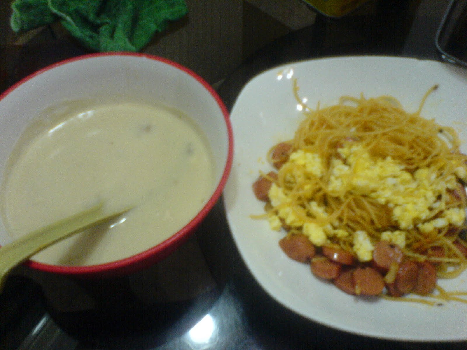 那天下午亲自煮了他喜欢吃的炒冬粉给他吃 还有红鸡蛋!结果一直给他笑我很传统 哈哈